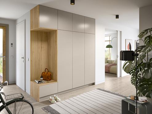 Die unten gezeigten Möbel sind im Möbelplaner nicht planbar. Um Ihnen aufwändige Planungsarbeiten zu ersparen, stellen wir Ihnen an dieser Stelle die fertige Planung zur Verfügung.